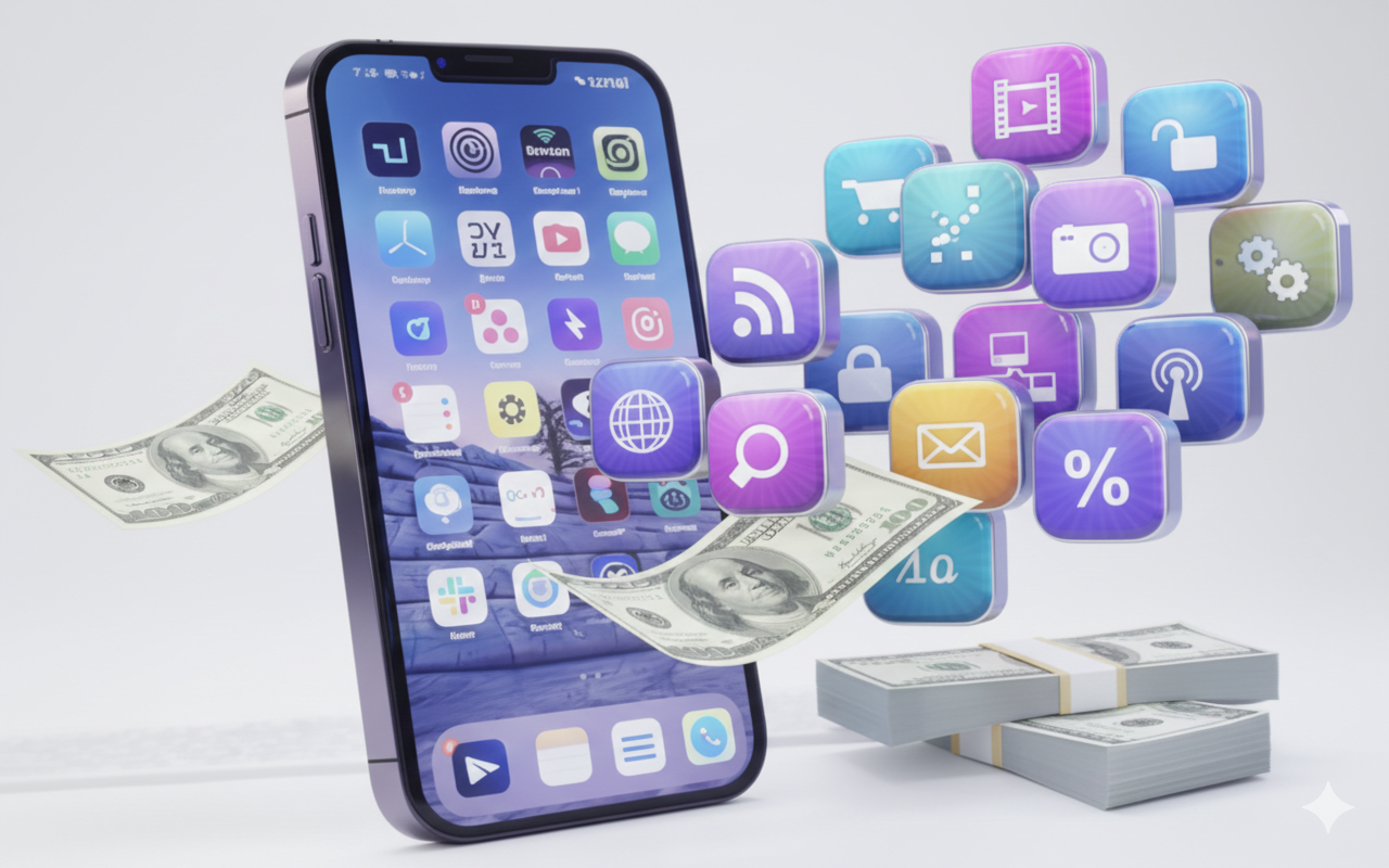 نوفر لك تجربة شراء ملكة تطبيقات الموبايل الموجوده بالفعلي علي المتجر